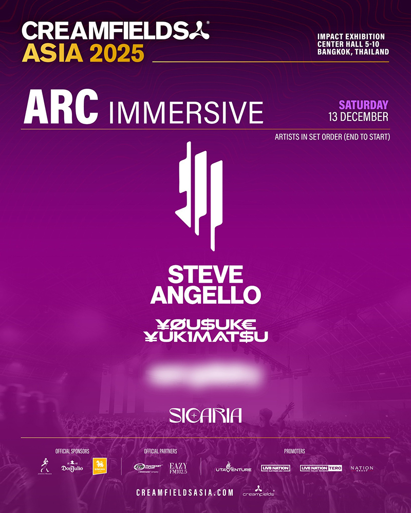 Arc Immersive stage will be at Creamfields Asia with artists Skrillex, Steve Angello, Yousuke Yukimatsu, Sicaria and more to be announced on the Saturday 13th December 2025.