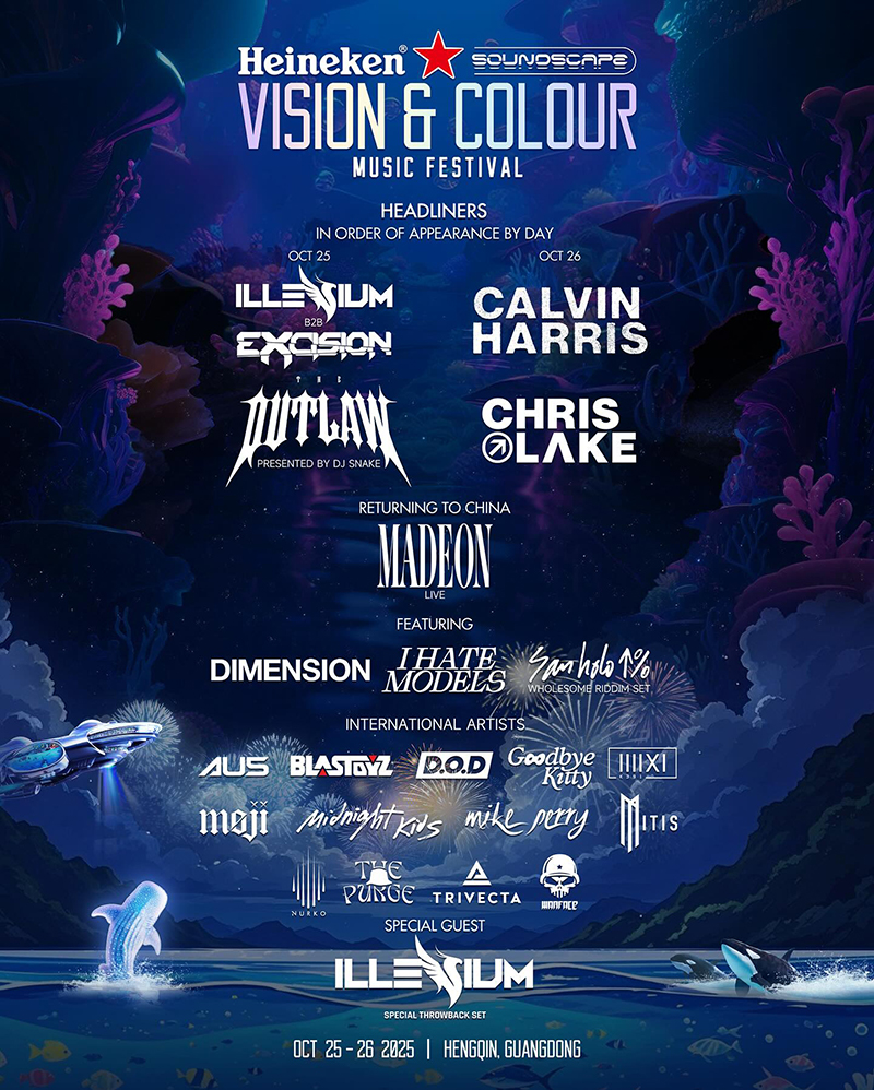 Vision & Colour Music Festival is back in October this year, taking place from 25th to 26th October 2025 in Hengqin, Guangdong, artists include Trivecta, Dimension, I Hate Models, Mitis, San Holo and many more...