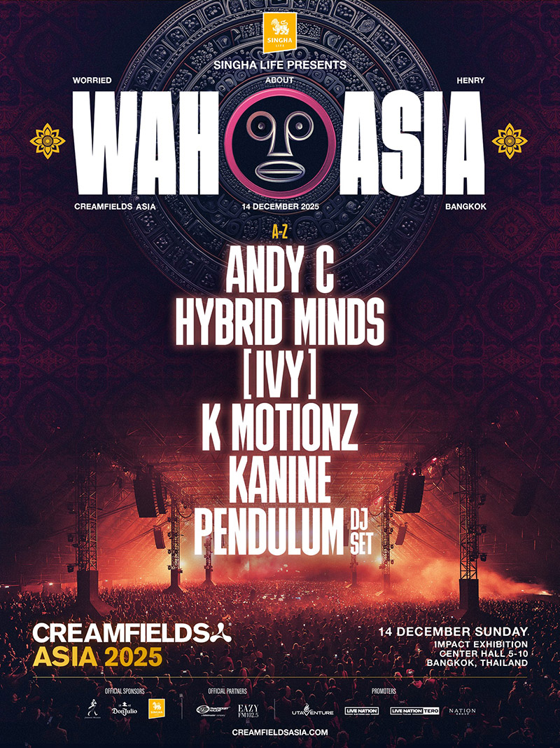 Worried About Henry joins Creamfields Asia for their first venture in Bangkok with a huge Drum & Bass lineup to Bangkok on 14th of December at IMPACT Exhibition Center. Artists include Andy C, Hybrid Minds, [IVY], K Motionz, Kanine and Pendulum (DJ Set).
