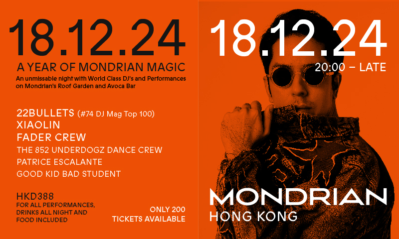 MONDRIAN HONG KONG is turning up the volume to celebrate its first anniversary with an exclusive party on December 18, 2024. Featuring a stellar lineup of international DJs, this one-night-only event will be headlined by the electrifying 22BULLETS from Thailand and Hong Kong’s own rising star, Xiaolin, promising a night of unforgettable energy and music at Avoca and the Roof Garden.