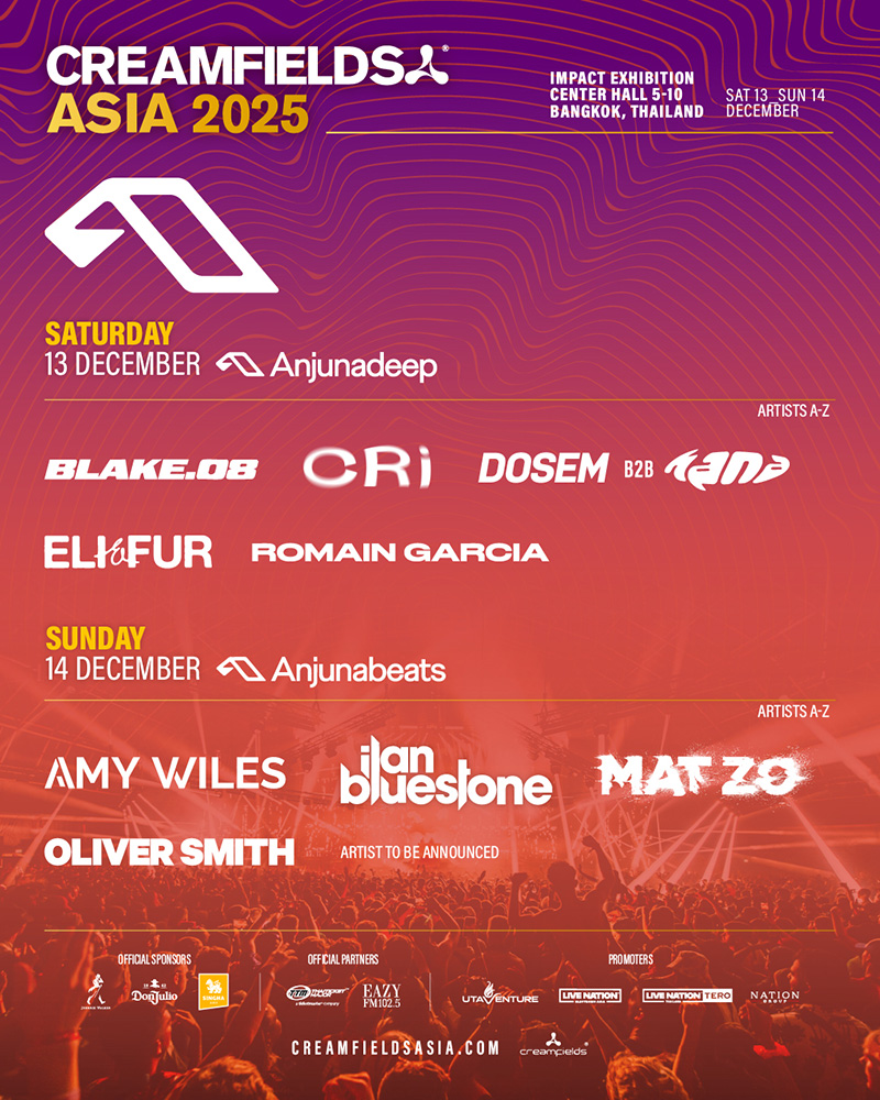 Creamfields Asia 2025 confirms Anjunadeep and Anjunabeats Stage. One Stage for two nights both Anjunadeep and Anjunabeats to take over the stage 4 at Creamfields Asia from 13th and 14th December 2025.