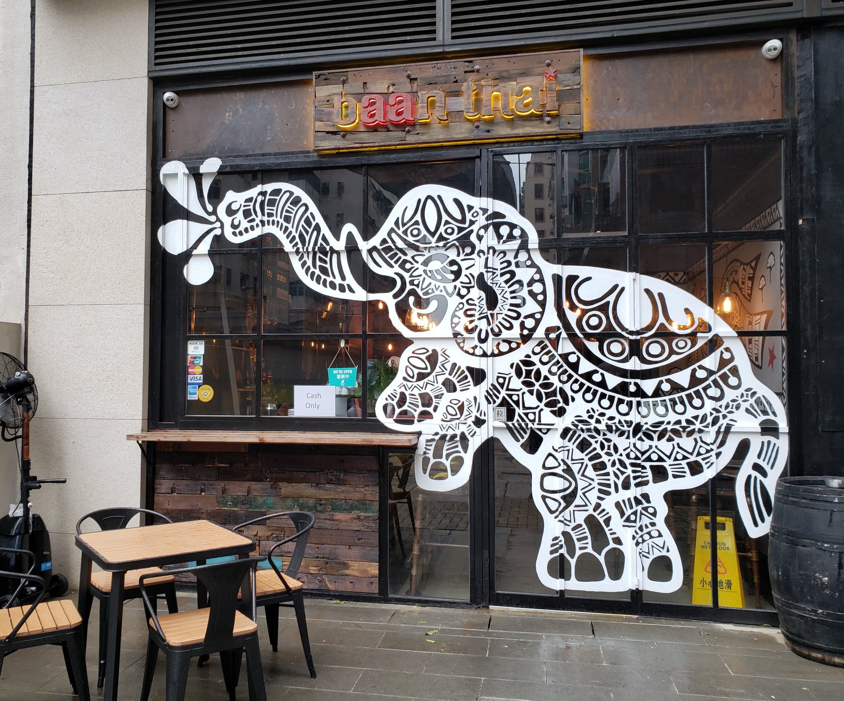 The fast becoming popular neighbourhood of Shek Tong Tsui, which lies between Kennedy Town and Sai Ying Pun and is the home of the HKU MTR station. Directly after you exit at B2, to your left you see South Lane, which has quite a few cafes and restaurants. At One South Lane, Baan Thai Restaurant - Sai Wan with it’s large window-painted Thai elephant stands out proudly as a colourful, vibrant and eye-catching dining establishment.