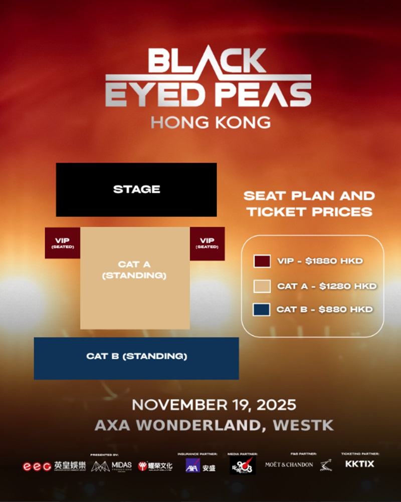 Black Eyed Peas will be returning to Hong Kong on 19th November 2025 at AXA Wonderland in West Kowloon.