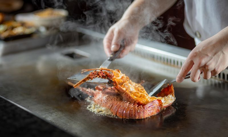 For the main course, you can choose the teppanyaki Spiny Lobster (half)—succulent and rich with umami—or the luxurious Kagoshima Wagyu, seared to perfection for melt-in-the-mouth tenderness. The meal culminates in a decadent finale with the Chocolate Coffee Kumquat Cake, where cocoa meets zesty citrus for a memorable finish.