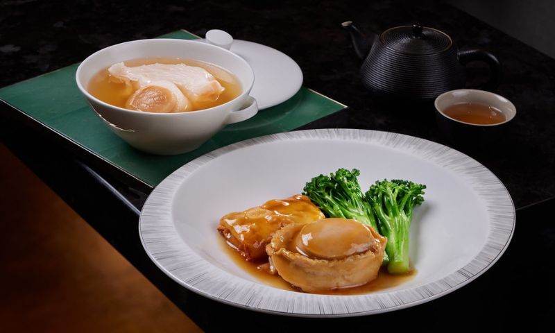 The feast begins with the classic crispy Roasted Suckling Pig, followed by the rich and savory Baked Sliced Lobster with Cheese on Crispy Rice Cracker. A nourishing Double-boiled Pork Lung Soup with Fish Maw and Grinded Almond offers wholesome warmth to start.