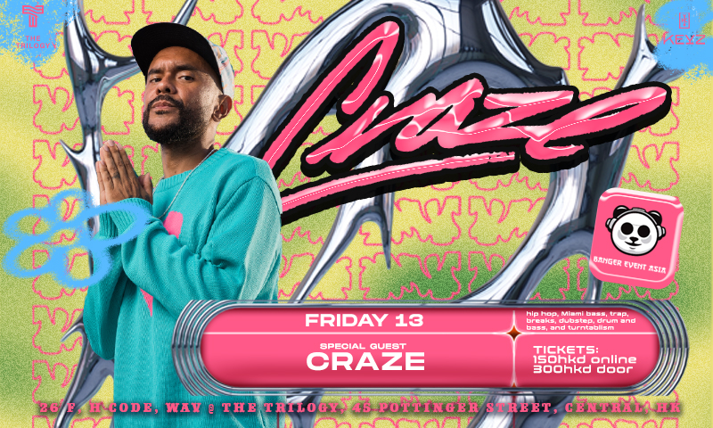 Get ready, party people — DJ Craze is coming to Hong Kong, and you do not want to miss this one! Known for his insane turntablism skills and genre-bending sets, this Nicaraguan-American legend is about to give us a masterclass in mixing. Whether you're into hip hop, Miami bass, trap, breaks, dubstep, or drum & bass, Craze has something up his sleeve that will keep you dancing all night long.